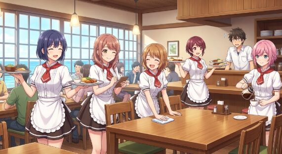 まずは1巻の試し読みで、海辺のカフェFamiliaの空気感と、5人の女神たちの洗礼を浴びてみてください。